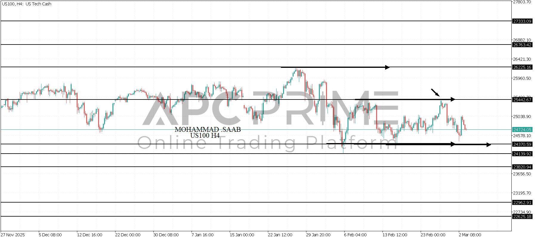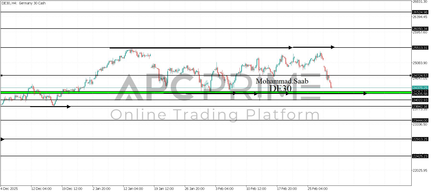 المنطقة الأهم (24724) ثبات السعر أسفل المنطقة الأهم يتجه السعر إلى منطقة الدعم (24205-24267) احتمالية الارتداد منها ممكنة ولكن بكسرها وإغلاق أسفل بشمعة أربع ساعات يتجه السعر إلى منطقة الدعم (24022)